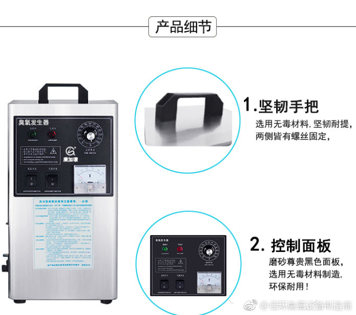 1.將臭氧發(fā)生器放置在待消毒房間外的特定(穩(wěn)定、通風(fēng)、散熱)位置,檢查臭氧硅膠軟管是否與機(jī)器的臭氧出口相連,并將臭氧輸送管引入待消毒房間。并在2m高度添加。 2.為了達(dá)到良好的臭氧消毒效果,請(qǐng)關(guān)閉門(mén)窗等。消毒期間請(qǐng)不要有人在室內(nèi)。 3:接通電源,電壓表顯示當(dāng)前電壓,打開(kāi)氣泵開(kāi)關(guān),氣泵指示燈亮,氣泵開(kāi)始工作。(電流表顯示當(dāng)前電流,對(duì)于15g以上的機(jī)器)臭氧出口有氣體輸出。