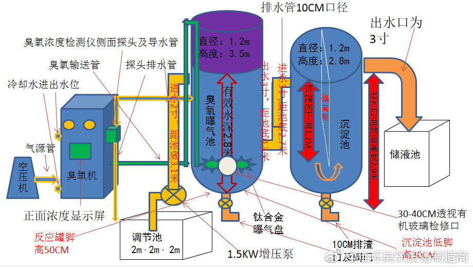污水處理過程中產(chǎn)生氣味的物質(zhì)主要由碳、氮和硫組成。只有少數(shù)產(chǎn)生氣味的物質(zhì)是無機化合物,如氨、磷、硫化氫;大多數(shù)產(chǎn)生氣味的物質(zhì)是有機化合物,如低分子脂肪酸、胺、醛、酮、醚等。根據(jù)我所在污水處理廠的進(jìn)水情況,80%的進(jìn)水量是生活污水,即有機物含量很高,無機化合物含量相對較少。大多數(shù)產(chǎn)生氣味的物質(zhì)是有機化合物,如低分子脂肪酸、胺、醛、酮、醚等。這些物質(zhì)都有活性基團(tuán),容易發(fā)生化學(xué)反應(yīng),特別容易被氧化。臭氧具有強氧化、氧化活性基團(tuán)和氣味消失的特點,從而達(dá)到除臭的原理。臭氧除了去除氣味外,還可以防止氣味的再生,這是因為臭氧發(fā)生器產(chǎn)生的氣體含有大量的氧氣或空氣,氣味物質(zhì)在缺氧環(huán)境中容易引起氣味,使用臭氧處理,同時氧化除臭,形成富氧環(huán)境,可以防止氣味的再生。改善城市生活污水處理廠的污水處理環(huán)境仍然比較重要。